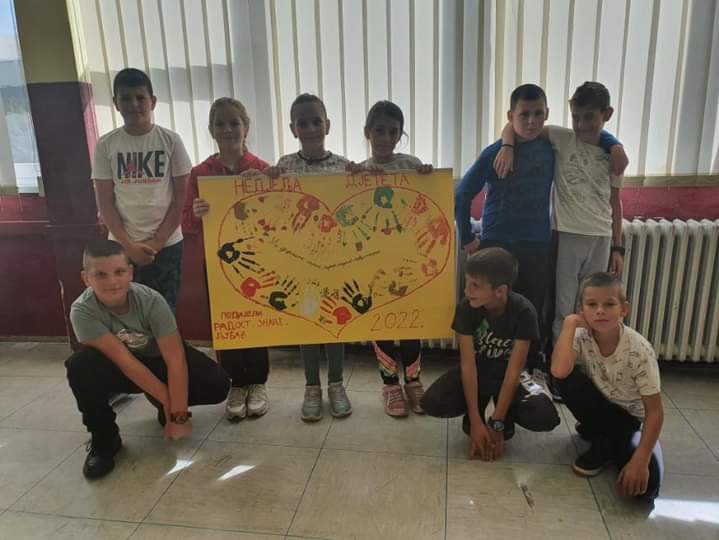 📌Ученици од првог до петог разреда наше школе, низом активности обиљежили су Недјељу дјетета. Кроз разговор о дјечијим правима и обавезама, обновили су и проширили своја знања из ове области и заједно са својим учитељицама и учитељима, направили пригодне паное. Дружење и игра су настављени на школском игралишту, гдје су чланови ритмичке, рецитаторске и драмске секције показали своје умјеће кроз рецитовање, драматизацију текста „Другарство“ и кореографију пјесме „Дјеца имају право“.