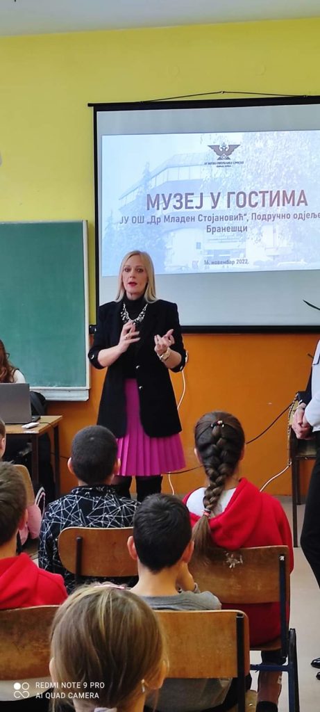 ➡У оквиру прве фазе пројекта, представници Музеја РС посјетили су данас наше подручно деветоразредно одјељење у Бранешцима. Музејски савјетник педагог Наташа Ного одржала је нашим ученицима кратку презентацију о историјату музеја и упознала их са тиме како музеј ради.