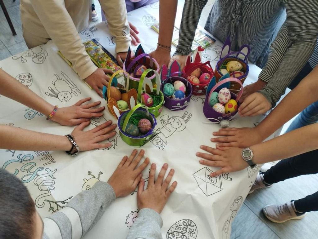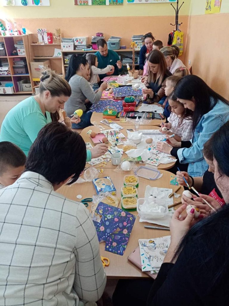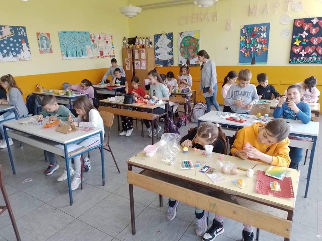 Са ученицима првог разреда централне школе и њиховим родитељима одржана je радионица „У сусрет Васкрсу“. Том приликом су украшавана јаја техником лијепљења детаља са салвета, те цртања и сликања разним бојама.